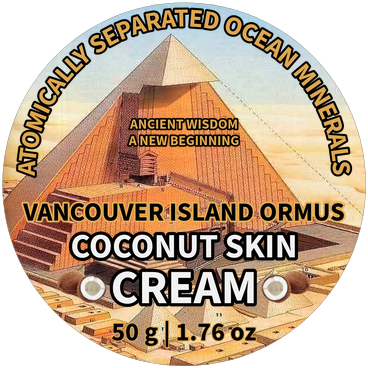Coconut Skin Cream by Vancouver Island Ormus is 100% pure ocean minerals harvested from the west coast of Vancouver Island and infused with organic coconut oil. The unique physical properties of the colloidal mineral cream allow us to bond it with oil with no additional ingredients. Effective for all skin types, especially effective for dry or cracked skin.